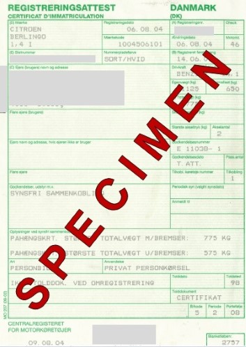 Danish registration certificate example 1