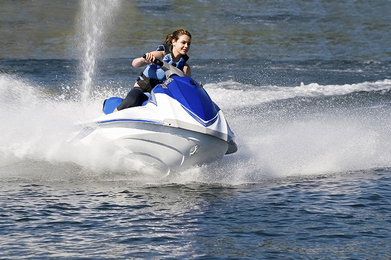Av alla som tagit förarbevis för vattenskoter är cirka var femte kvinna, genomsnittsåldern är 45 år och den äldste är 91 år. Foto: Adobe Stock