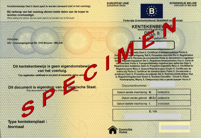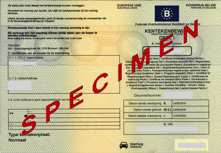 Belgien registreringsbevis exempel 1 del 1