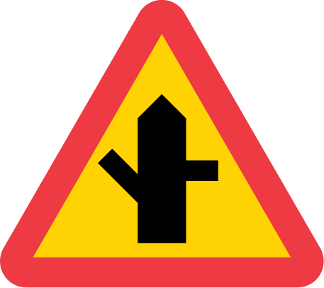 • Varning för vägkorsning där trafikanter på anslutande väg har väjningsplikt eller stopplikt